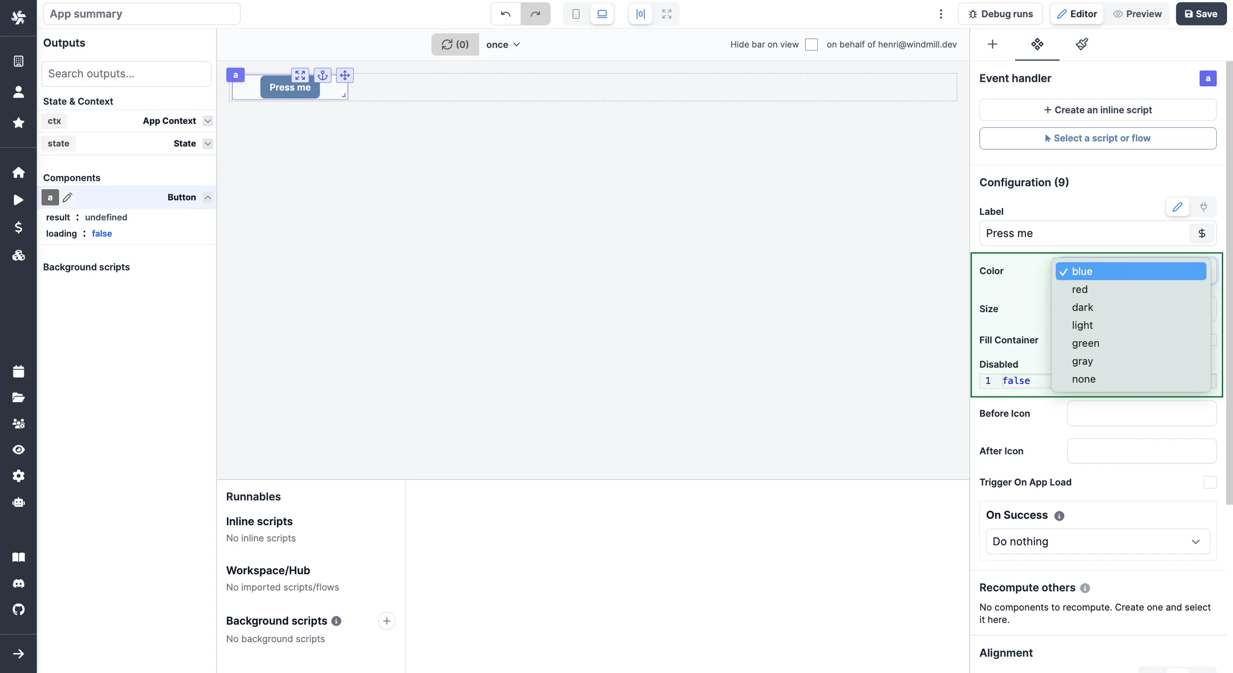 From the Styling Menu, enable "Use dynamic class" to apply styling through an eval and therefore connect it to other components or to runnables (scripts, flows).