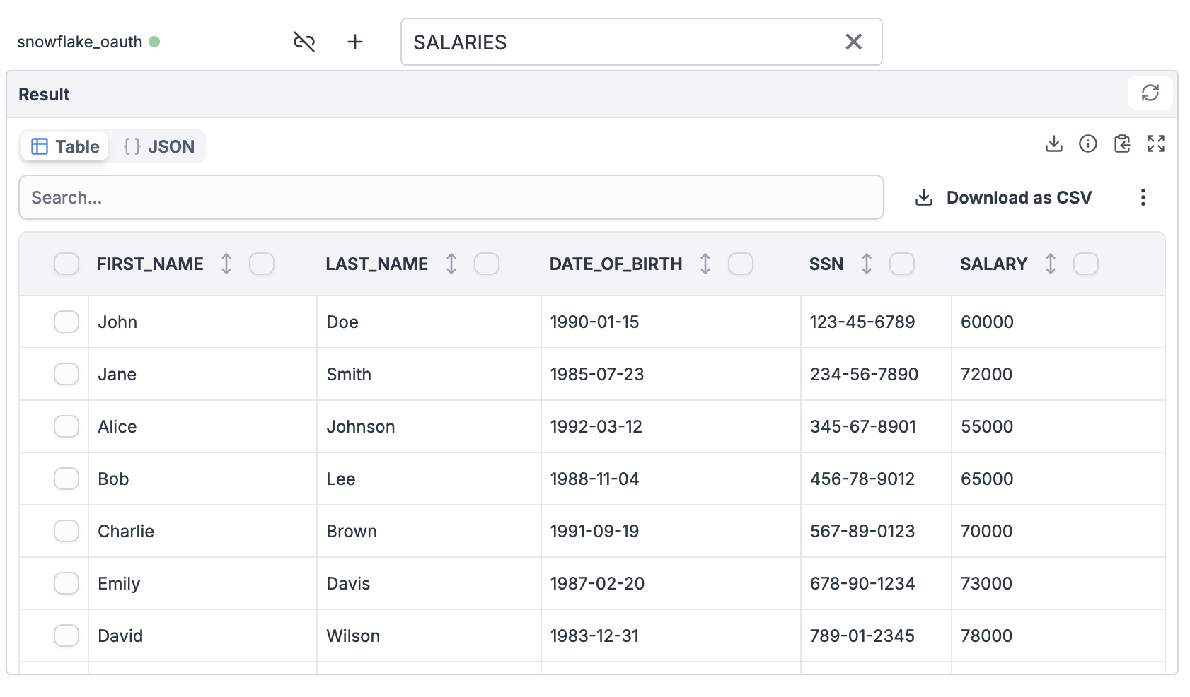 This guide walks you through building an application that accesses Snowflake data based on the end-user’s role, using OAuth in Windmill. By leveraging dynamic role-based credentials from Snowflake’s OAuth integration, we avoid static credentials and enable secure data access customized for each user. This can be particularly useful for organizations with strict data access policies and multiple user roles where row access policies are set up.